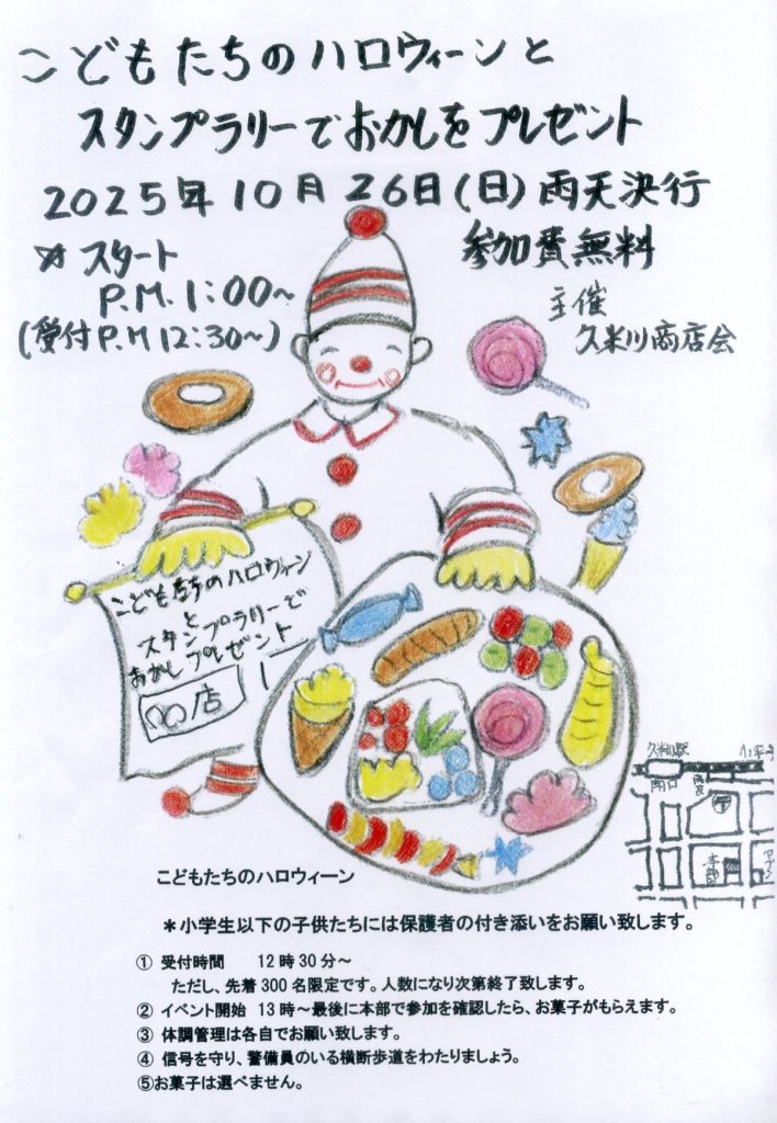 参加方法:久米川商店会周辺地域へ既に配布済のスタンプラリー応募用紙(チラシ)を使用してください