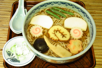 おかめそば 850円 インゲン、蒲鉾、なると、伊達巻、椎茸、たけのこ、お麩など7種類の具を「おかめ」の顔に見立ててのせています。新しい年の始まりに縁起物の「おかめそば」はいかがでしょうか。 東京都の感染拡大防止ガイドラインの徹底に取り組み... -